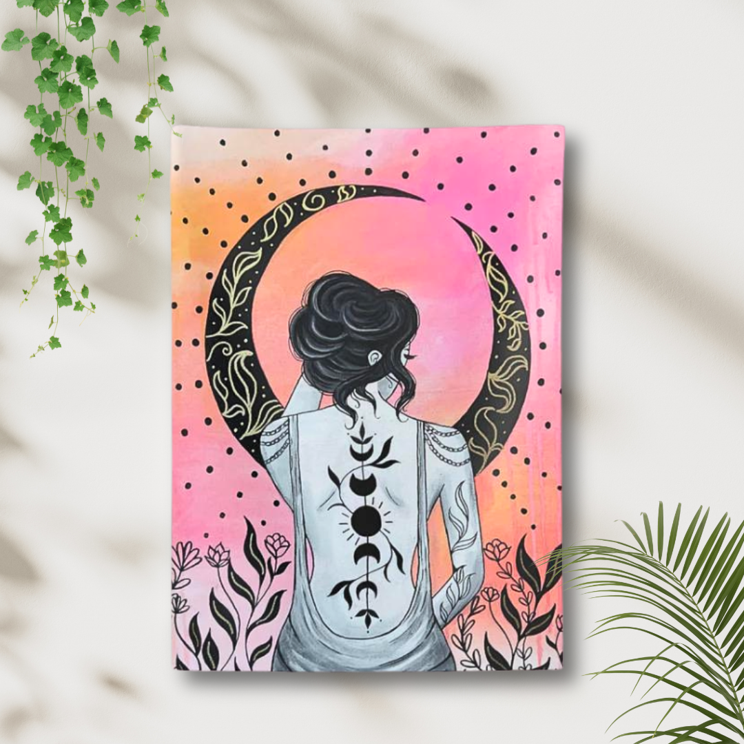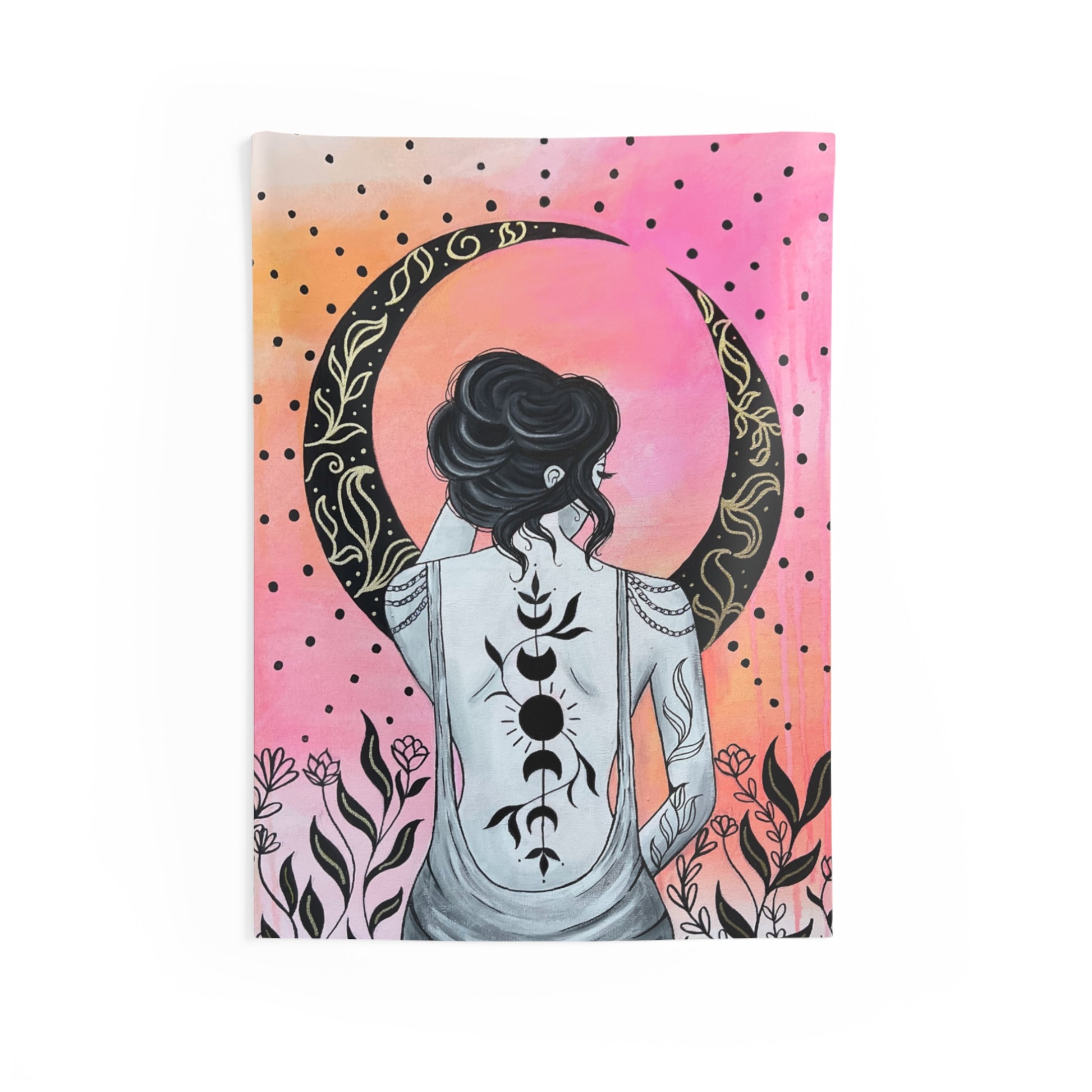 Black Floral Moon Tapestry